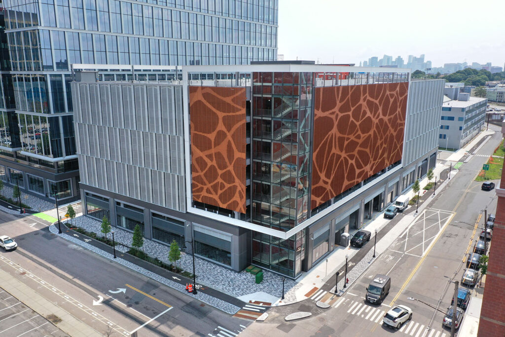 In addition to the structural challenges, the garage had to meet open-air ventilation requirements to ensure air circulation within the parking levels. The combination of perforated aluminum cladding and precast concrete solved this issue by allowing for the necessary airflow while maintaining the architectural vision of the building. This adaptability was key to satisfying zoning requirements.