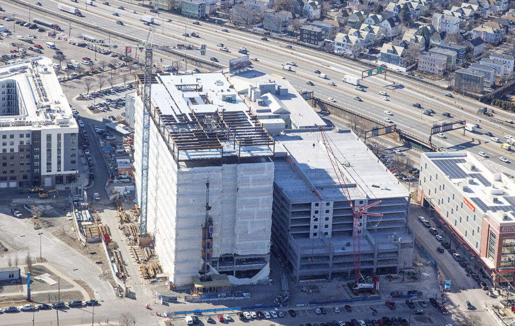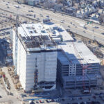 Originally designed as a structural steel frame with a cast-in-place concrete deck, the project was converted to precast concrete due to its cost savings, durability, and schedule advantages. Given the logistical constraints of the site which included the simultaneous construction of an adjacent high-rise lab/office building the precast construction approach allowed for faster installation, reduced on-site congestion, and improved quality control compared to the original design.